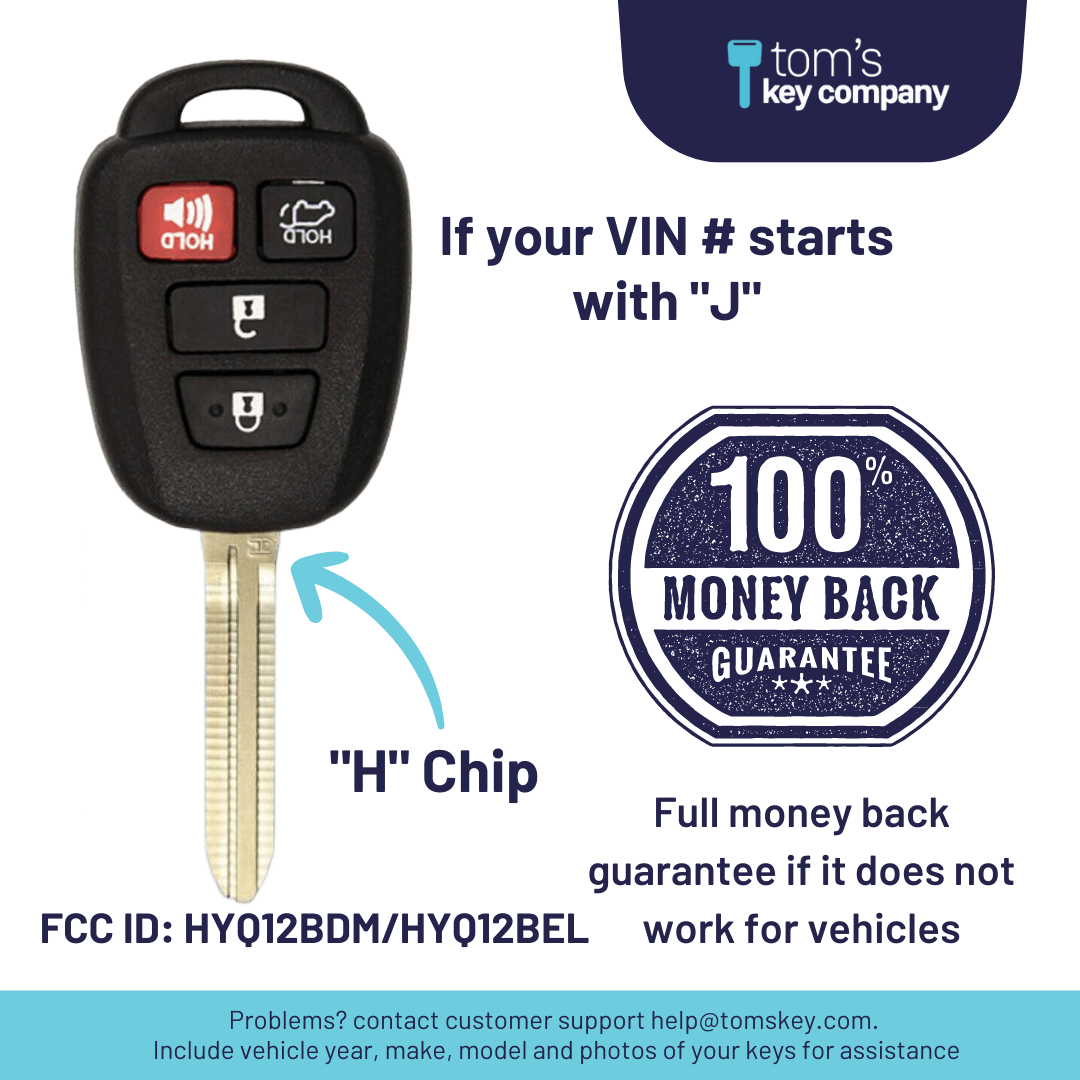 2013-2018 Toyota RAV4 Remote Transponder Key with Remote: 4 Buttons (HYQ12BDM-4B-H)