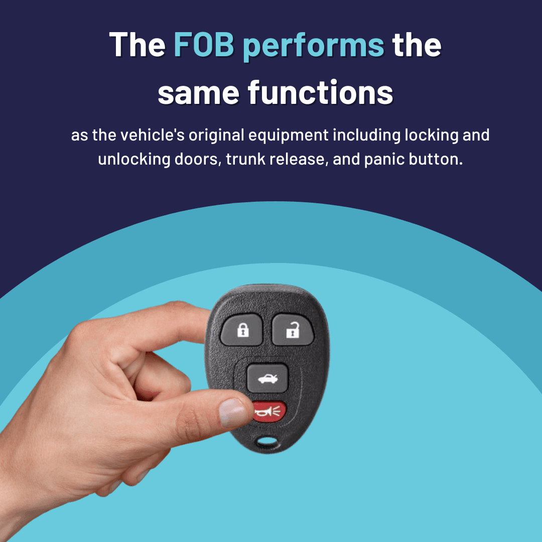 - 4-button remote FOB with Lock, Unlock, Panic, and Trunk Release