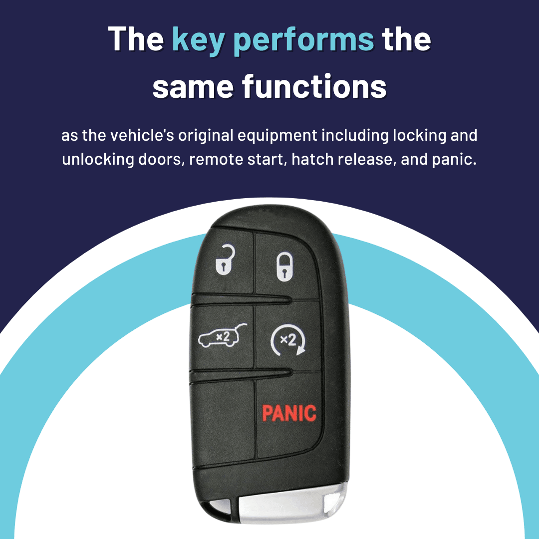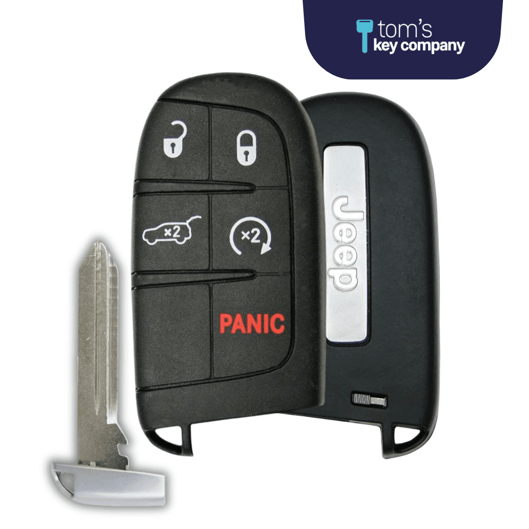 Like New Refurbished OEM 5 Button Smart Key with Logo with Remote Start and Hatch Release for Jeep Grand Cherokee Vehicles (JEEPSK-REFURB-5B-RS-HR-M3N-TMB)
